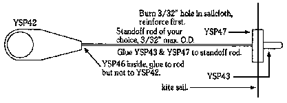 assembly. Burn a 3/32" hole in kite sail for your standoff rod to go through.